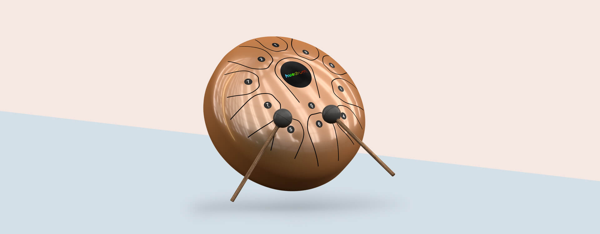 Simply start playing and be surprised by how good you sound! There is no “right” way to play the HueDrum.